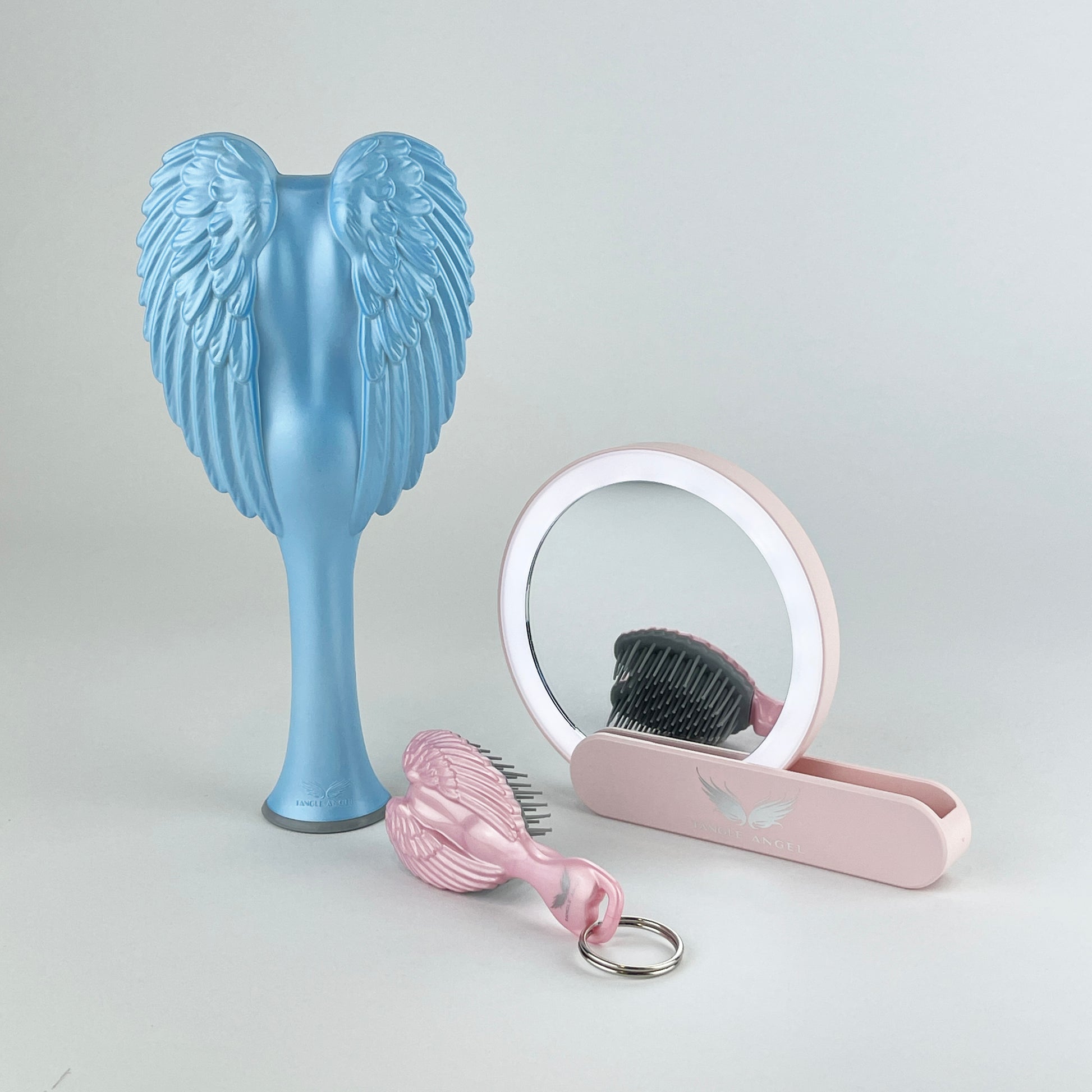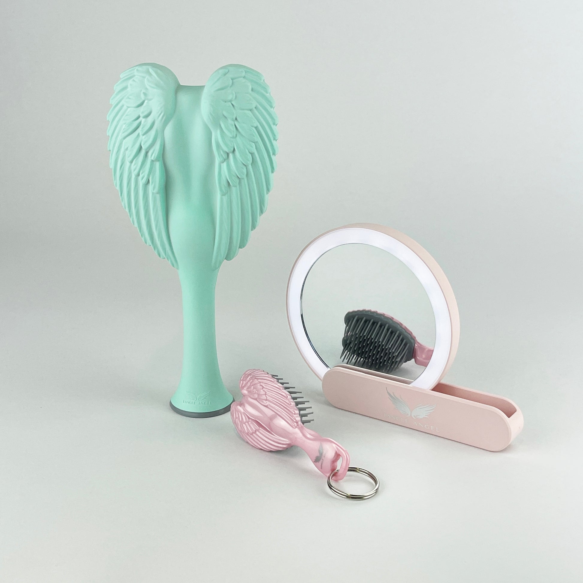 The ultimate hair care bundle to keep those tangles at bay. Our Trusty Tangle Trio combines our best-selling Angel 2.0 Detangling Brush with handy LED Mirror and Angel Keyring. This trusty trio of products will enable you to keep your hair and makeup in check wherever you go.